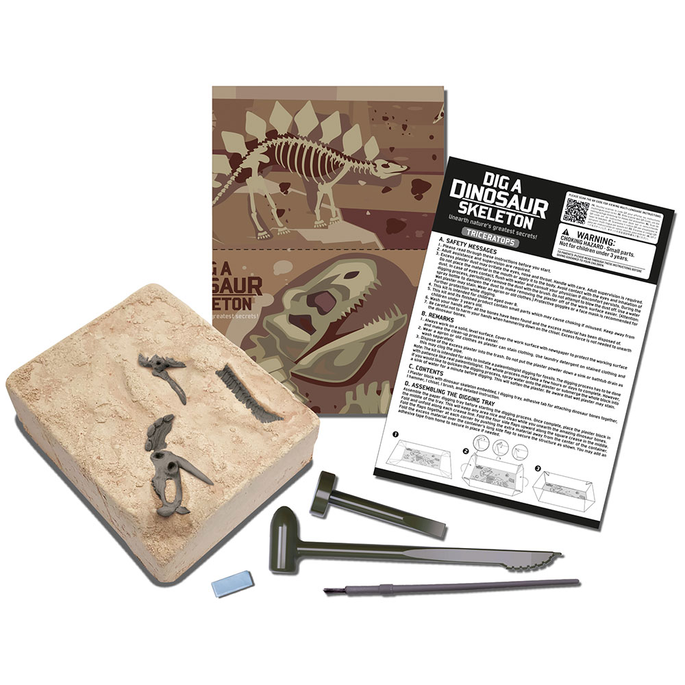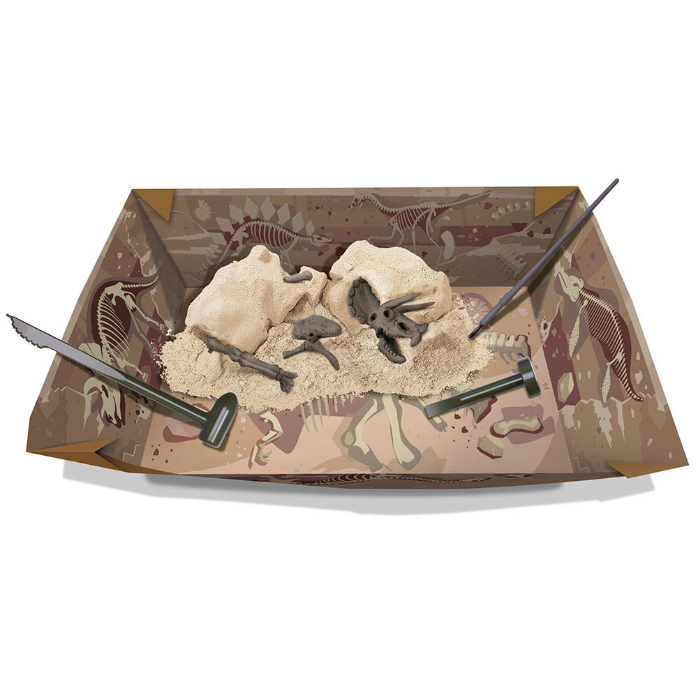 S tem igralnim setom bo vaš otrok prebudil raziskovalca in arheologa v sebi! Najprej bo izkopal delce okostja, nato pa sestavil 20 cm model največjega rastlinojedega dinozavra. Prepoznaven je po svoji veliki glavi.