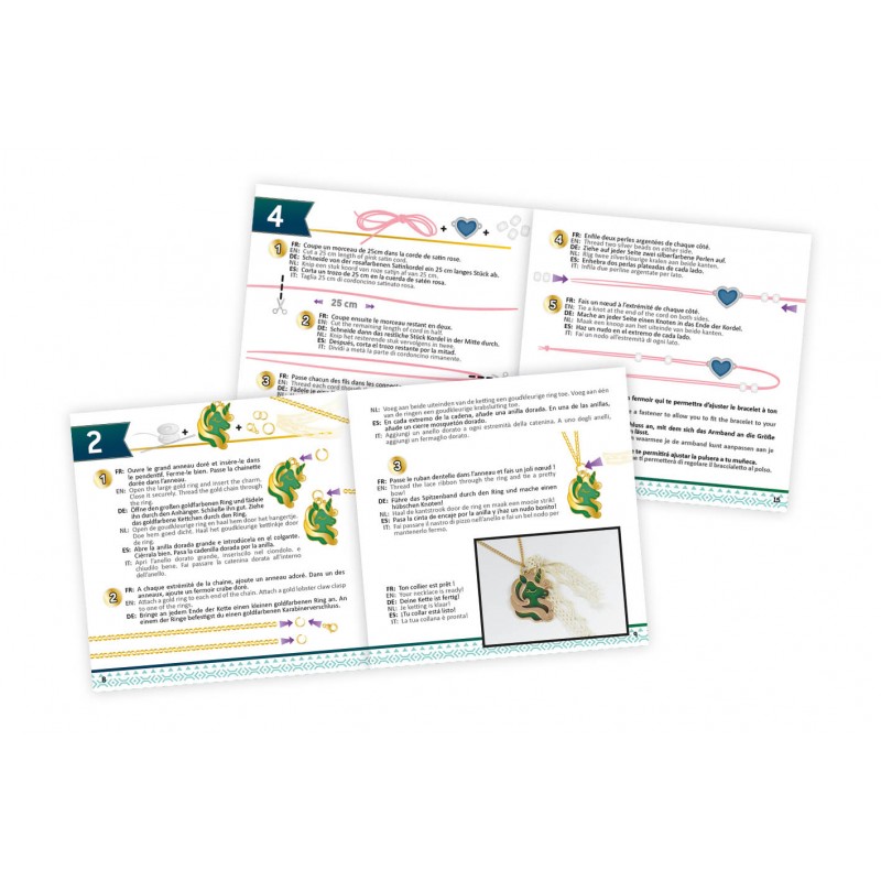 Vaša deklica bo lahko s pomočjo seta, ter priloženimi vrvicami, kroglicami, obeski in drugimi dodatki ustvarila  kar pet trendovskih kosov nakita, od zapestnic, ogrlic in uhanov, ter z njimi popestrila svoj modni slog ali presenetila prijateljice.  Obstajajo najrazličnejše tehnike pletenja vrvic in nizanja kroglic, kje bodo vaši deklici v pomoč priložena navodila in pri čemer bodo z uporabo njene ustvarjalne žilice in rok nastale različne, čudovite kreacije.