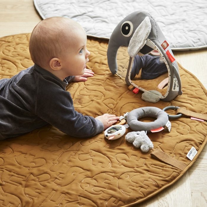 Aktivnostna igračka v obliki kroga bo malčka spodbudila, da bo radovedno raziskoval, kaj jim obroček ponuja. Pritrdite ga lahko na lupinico, otroški voziček ali posteljico.
