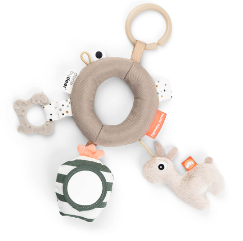 Aktivnostna igračka v obliki kroga blagovne znamke Done by Deer bo navdušila vašega malčka.  Naj radovedni prstki in oči raziskujejo senzorične značilnosti. Aktivnostni obroč bo spodbudil, da bodo vaši malčki radovedni in da bodo raziskali, kaj jim obroček ponuja.  Vaš malček bo našel olajšanje tudi za srbeče dlesni na obročkih, ki bodo ob igri ustvarjali stimulativne zvoke. Teksturni lističi so idealni za radovedne prstke in zvok nežnega šuma bo vedno vzpodbudil nadaljnje raziskovanje in zabavo. Aktivnostni krog ima tudi univerzalen obroček, s katerim jo boste lahko pritrdili na lupinico, otroški voziček ali posteljico.
