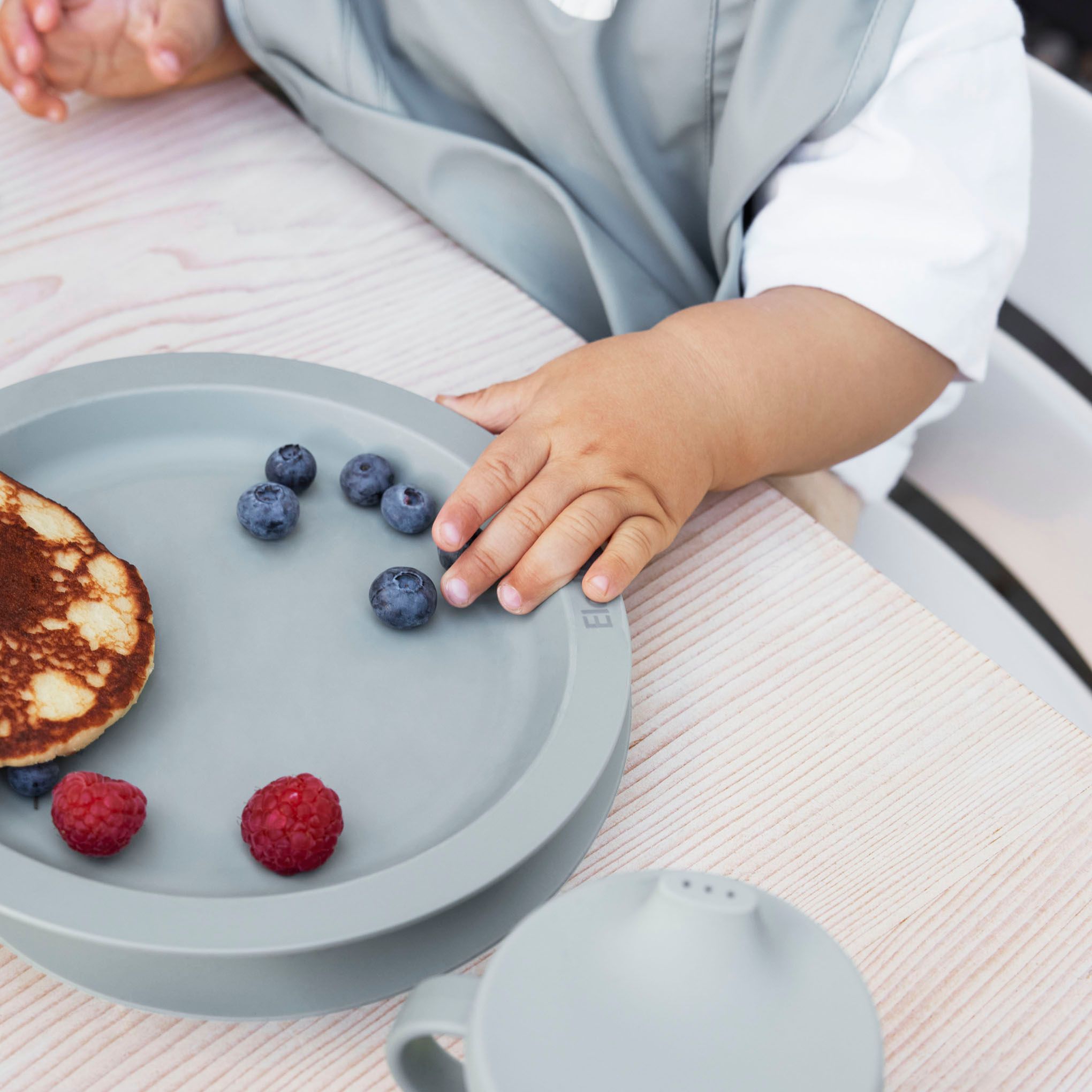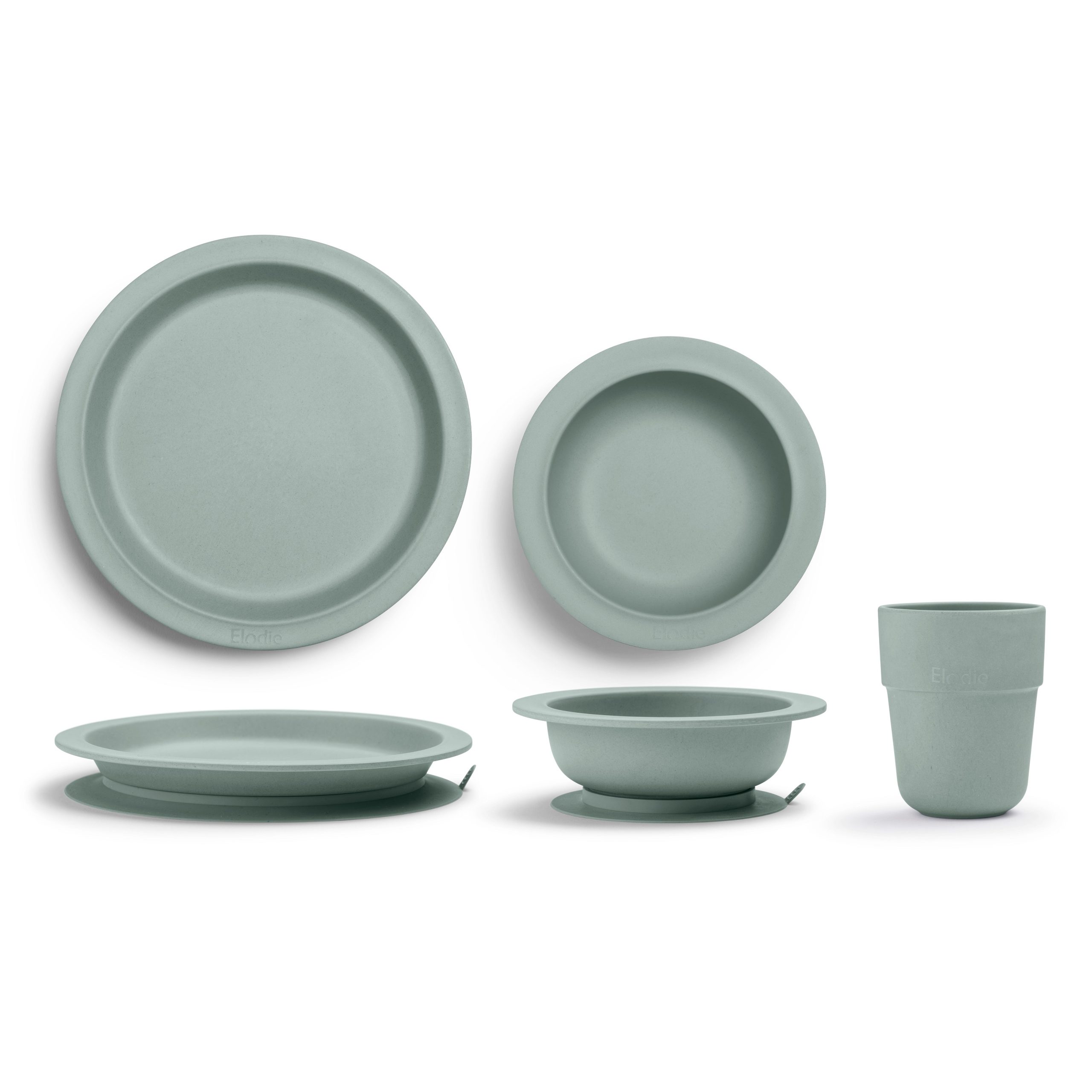 Prikupen tri-delni jedilni set blagovne znamke Elodie je narejen iz bambusovih in koruznih vlaken in je brez škodljivih snovi. Krožnik in skledica imata inovativno funkcijo, ki bo z vakumsko oprijemljivostjo na dnu krožnika omogočila fiksno obstojnost, malčkom pa užitke ob učenju samostojnega hranjenja.