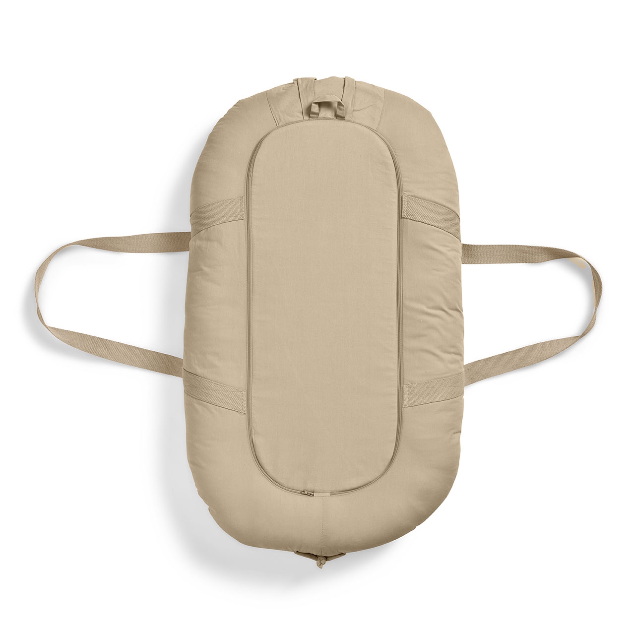 Prenosno gnezdo za dojenčka blagovne znamke Elodie je popolno za vašega novorojenčka, ki se navaja na novo okolje. Gnezdo ustvarja prijetno in udobno okolje, ki ga zlahka in varno premikate iz sobe v sobo, medtem ko ste doma ali v stanovanju, tako da imate svojega malčka lahko vedno ob sebi. Gnezdo je izdelano iz 100% bombaža, ki ga lahko operete v pralnem stroju. Vzmetnica iz mehke pene je nameščena na robu trdne lahke plošče in v kombinaciji z izjemno dolgimi naramnicami omogoča zelo enostavno nemoteno in varno premikanje z enega na drugo mesto. Dolge naramnice omogočajo dvigovanje in prenašanje brez nepotrebnega zibanja ali tresenja, ki bi lahko motile miren spanec vašega otroka.