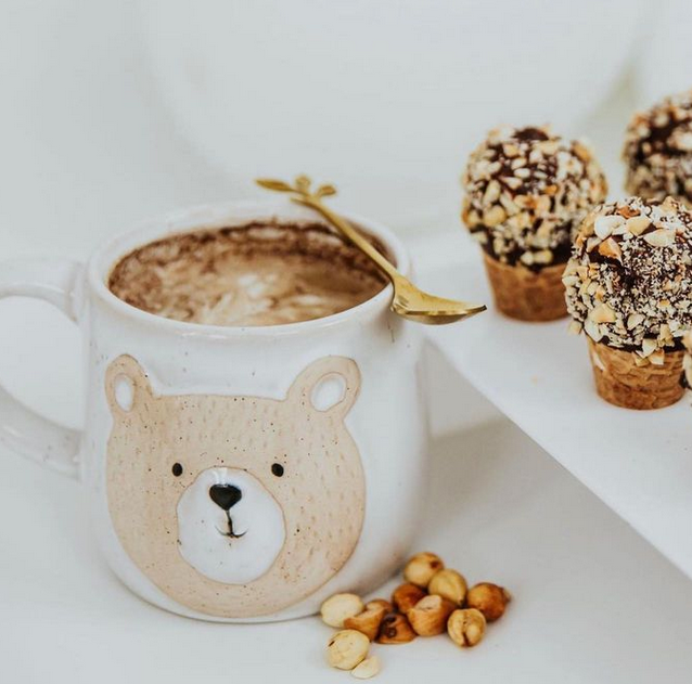 Prisrčna, minimalistična skodelica z motivom medvedka bo polepšala rutino srkanja čaja ali kakava v hladnih jesenskih in zimskih dneh.