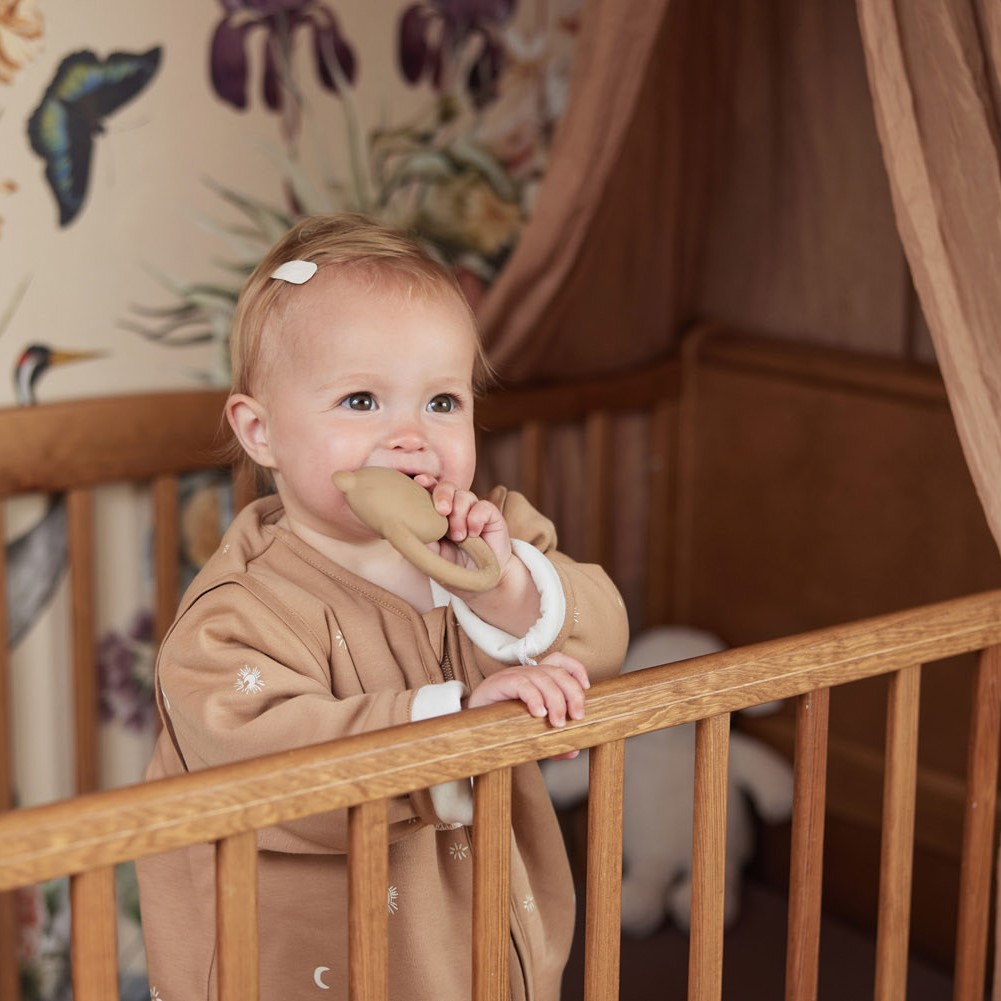 Naravno grizalo iz 100 % naravnega lateksa bo vašemu malčku v uteho pri bolečinah v času izraščanja zobkov.