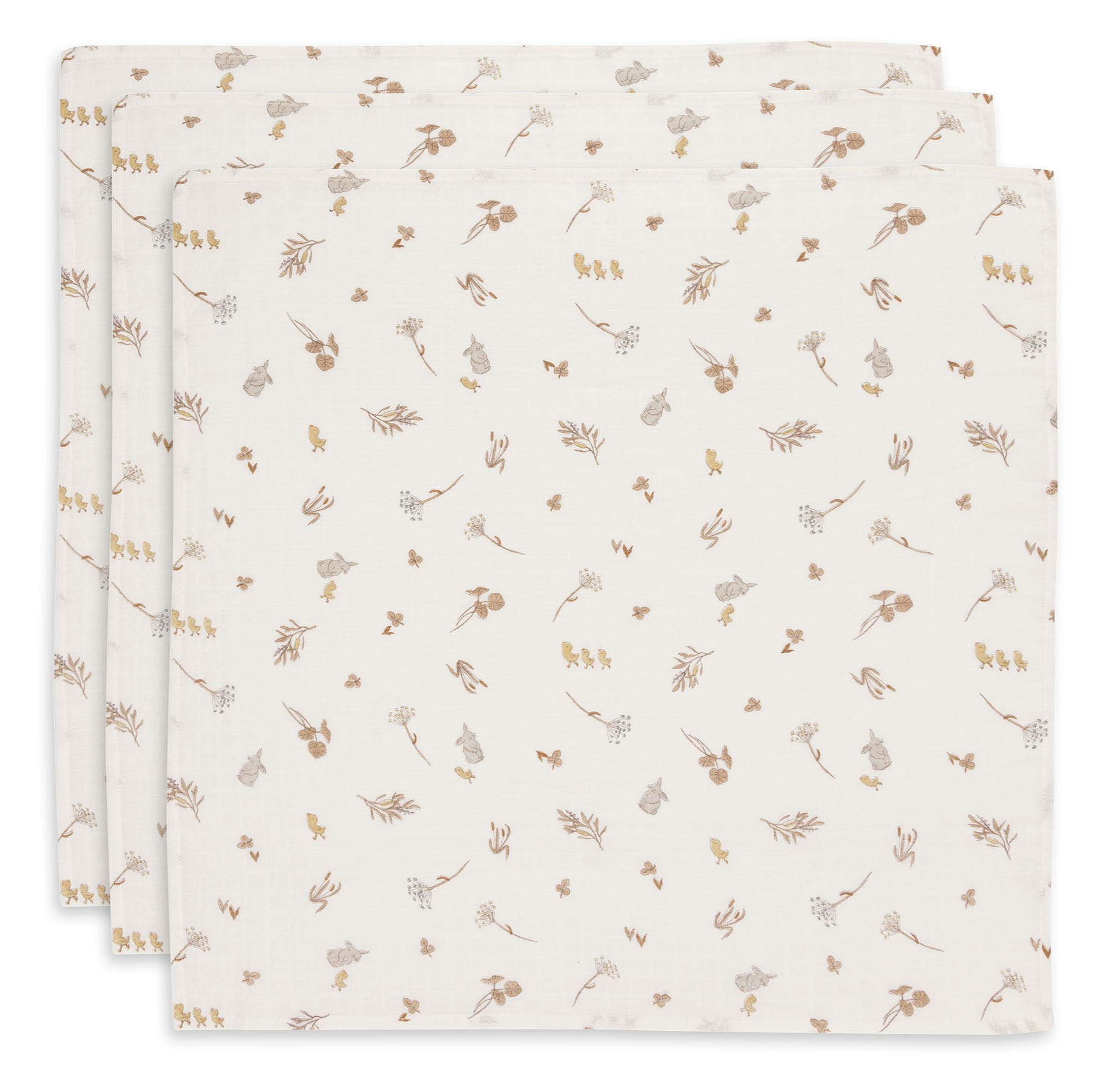 Komplet 3 večnamenskih tetra pleničk iz 100 % bombaža v velikosti 70 x 70 cm s nežnim potiskom suhega cvetja in zajčkov Riverside.
