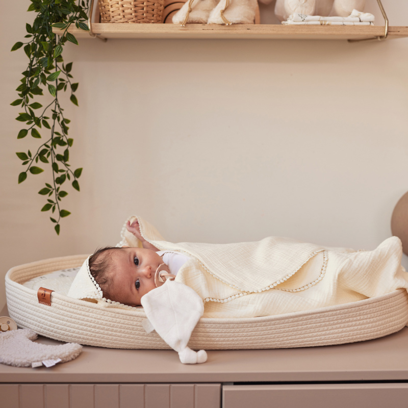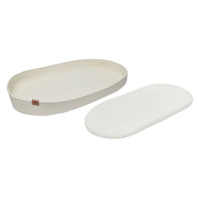 Previjalna podloga Moses je ne le uporaben pripomoček, pač pa tudi čudovit detajl otroške sobice. Sestoji iz košare in vzmetnice s snemljivo in pralno prevleko.