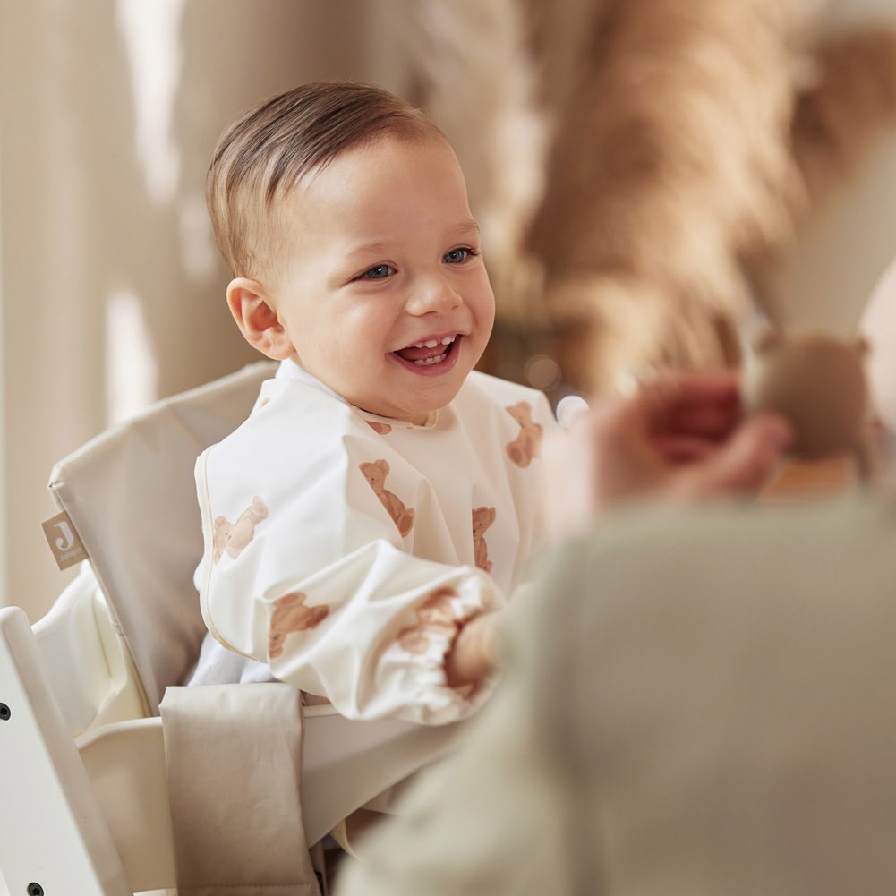 Čudovit slinček z rokavi iz kolekcije Teddy Bear bo oblačila vašega otroka zaščitil pred madeži, ki bodo nastali v času kosila ali ustvarjanja.