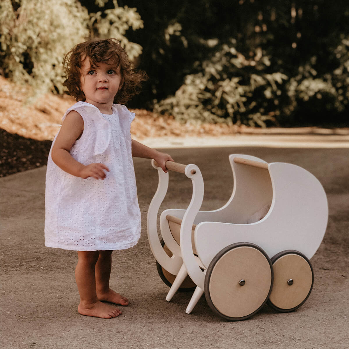 Domov IGRA Lesene igrače Kinderfeets® Lesen voziček za lutke in urjenje hoje White