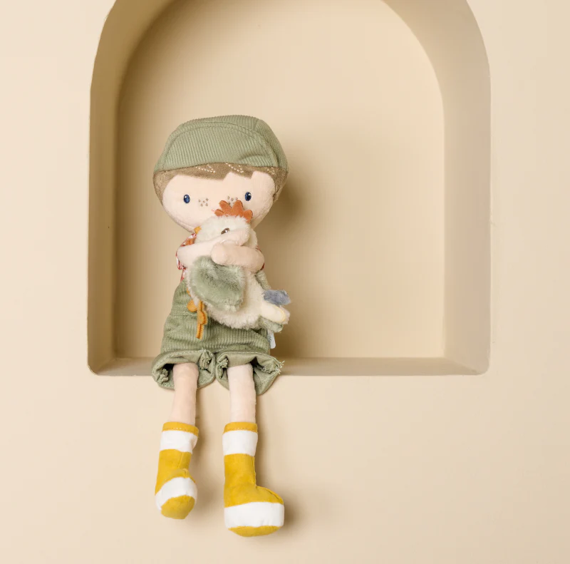 Spoznajte Jima, fanta, ki vam bo s ponosom pokazal svojo kmetijo in predstavil, kaj vse s svojim piščančkom doživi na njej. To plišasto mehko igračko za crkljanje prejmete v čudoviti škatli in je zato primerna tudi za darilo.