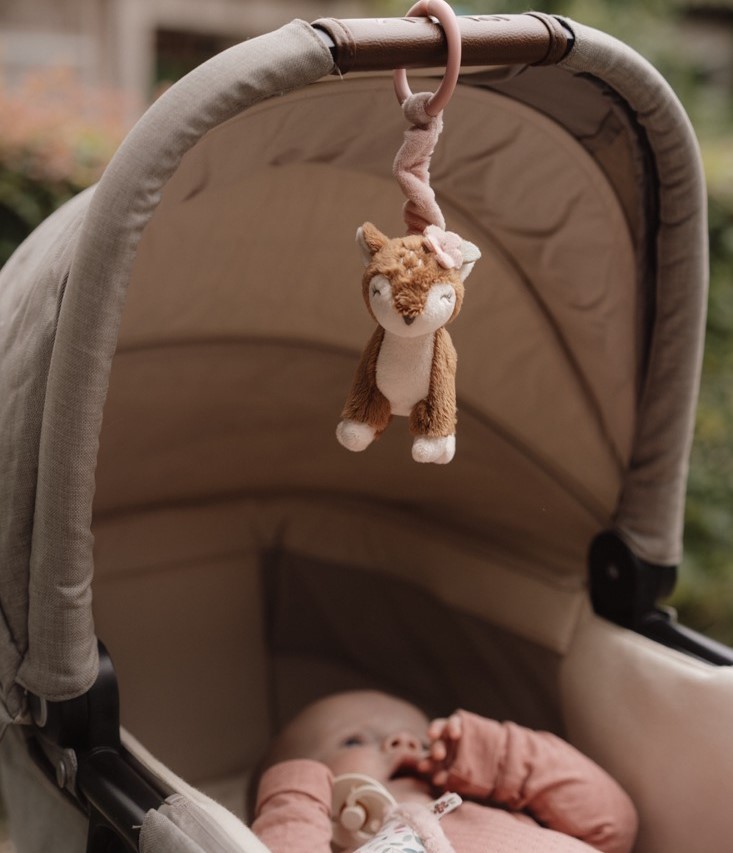 Ljubka srnica kaj hitro postane tudi nadvse zabavna, ko jo malčica potegne k sebi in se začne tresti. Zares smešen občutek! Zahvaljujoč obroču se zlahka pritrdi na voziček, avtosedež, igralni lok, … Je idealno darilo ob rojstvu.