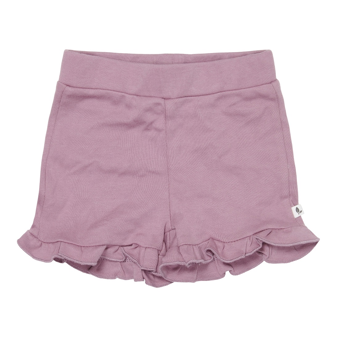 Vijolične kratke hlače z naborki, izdelane so iz certificiranega organskega bombaža, bodo idealna dopolnitev garderobe vaše deklice.