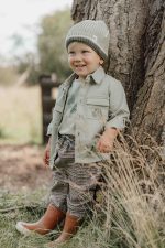 Pripravite svojega malčka na jesenske avanture v stilu s to pleteno kapo v naravni zeleni barvi. Izdelana je iz organskega bombaža in ponuja popolno udobje za hladnejše dni. Kontrastni trak ni samo lep detajl, temveč zagotavlja tudi tesno prileganje okoli ušes in jih ohranja dodatno tople. Brez težav kombinirajte to kapo s svojimi najljubšimi kosi oblačil iz kolekcije Farm. Na voljo v dveh velikostih: 74/86 in 92/104.