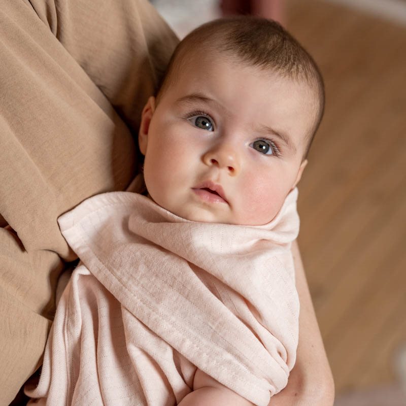Ta mehka in vpojna povijalna plenica v nežno rožnatem odtenku je nepogrešljiv pripomoček, saj lahko vanjo zavijete dojenčico po kopanju ali jo uporabite kot lahko poletno odejico na sprehodu ali na plaži. Izdelana je iz izjemno mehkega bombaža z visoko absorpcijsko zmogljivostjo.