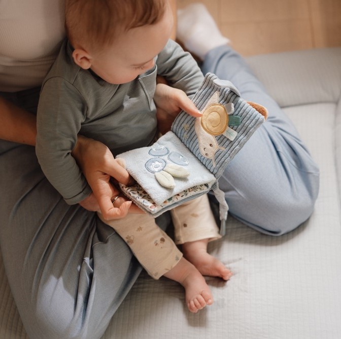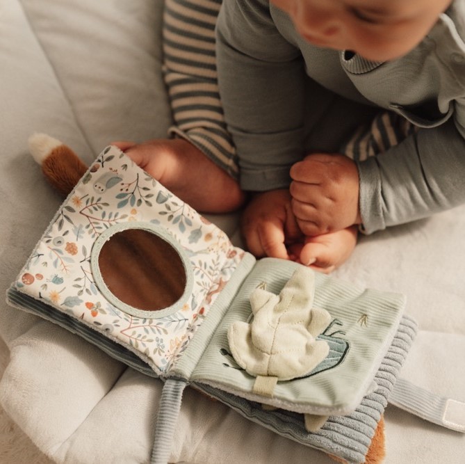 Senzorična mehka knjigica z motivi iz kolekcije Forest Friends vsebuje veliko različnih tekstur tkanine in dojenčku nudi veliko razburljivega raziskovanja. Dojenčki uživajo v odkrivanju številnih interaktivnih elementov v knjižici, kot so šelestajoči in piskajoči deli, ogledalo, trakovi. Knjigica ne spodbuja samo čutov, ampak je tudi kot nalašč za razvoj usklajevanja rok in oči. Igračo z obročem zlahka pritrdite na voziček ali avtosedež.