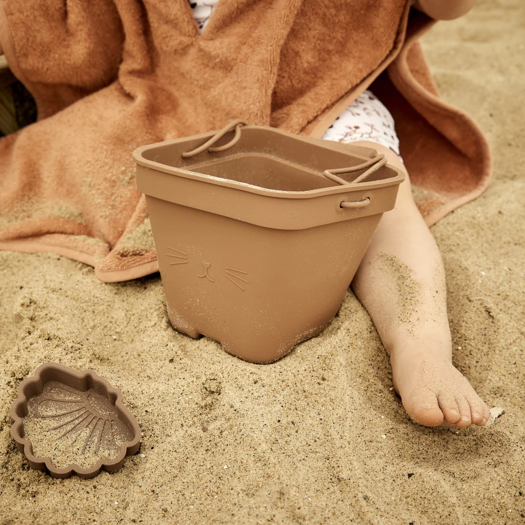 Silikonski igralni set za na plažo Nuuroo vsebuje lopato, vedro in igrive modelčke morskih motivov.