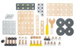 Popoln konstrukcijski set za male nadebudne mehanike, ki radi opazujujejo svoje očete pri delu in jih ob tem posnemajo. S tem konstrukcijskim setom se lahko vaš mali mojstrer kreativno izraža in izdela edinstvene konstrukcijske sete, od vozil do živali, ob tem pa skozi igro krepijo svoje motorične spretnosti in koncentracijo. Z vijaki, maticami, izvijačem, kolesi, distančniki in drugimi pripomočki lahko sestavi tridimenzionalne izdelke in se nato z njimi igra – enkrat bo to letalo, drugih traktor, tretjič poni. Kamor ga bo zanesla igra, to bo nastalo izpod njegovih rok.