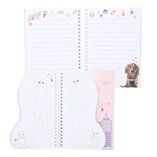 • 71 strani: črtaste črte za zapiske in silhuete TOPModelov za barvanje in skiciranje